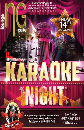 ΚΑΡΑΟΚΕ ΠΑΡΤΥ SHOW ΠΑΡΑΣΚΕΥΗ 14/12/2012 ΣΤΟ “NG LOUNGE CAFE” ΦΩΚΙΟΝΟΣ ΝΕΓΡΗ 18 ΚΥΨΕΛΗ RESERVE (697 8861047 Whats Up) ΩΡΑ ΕΝΑΡΞΗΣ 22.00 ΔΕΙΤΕ ΧΑΡΤΗ ΠΟΥ ΝΑ ΜΑΣ ΒΡΕΙΤΕ