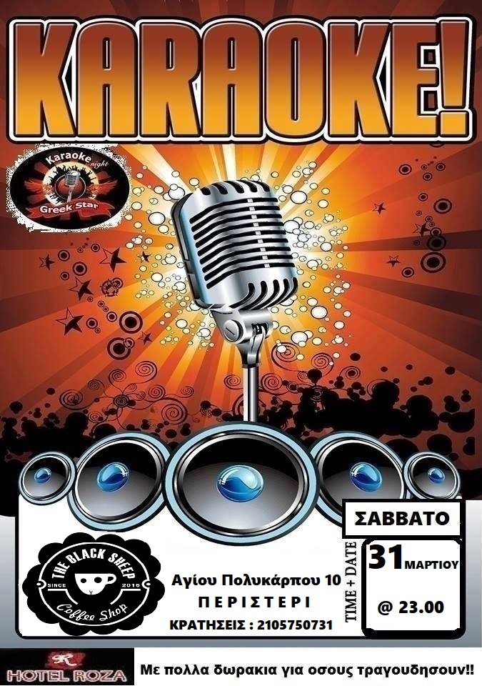 Έρχεται το τελευταίο μας καραόκε πάρτι για τον μήνα Μάρτιο…. Που? Στο <<The Black Sheep>> στο Περιστέρι!